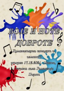 позивамо вас на хуманитарни концерт под називом „Боје и ноте доброте“, који ће се одржати у уторак 17.децембра са почетком у 18 сати, у Свечаној сали Гимназије Пирот.